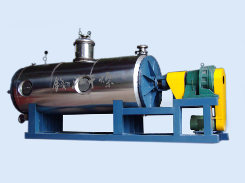 本机是一种新颖卧式间歇式真空干燥设备,湿物料经传导蒸发,带有刮板搅拌器不断清除热面上的物料,并在容器内推移形成循环流,水份蒸发后由真空泵抽出。